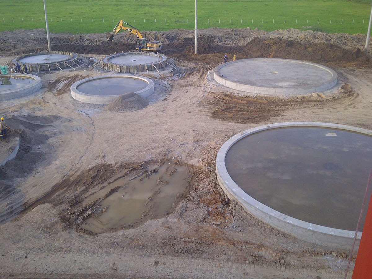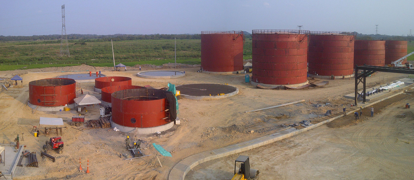 Se hizo la construcción de 342 pilotes de diámetro 1.00 metro y la construcción de 17 placas de concreto de diámetros desde los 9 hasta los 16 metros y espesor 0.60 metros para soportar tanques de almacenamiento de combustibles líquidos con capacidad de 3.000, 10.000 y 14,700 barriles, para la Terminal de Abastecimiento de combustibles líquidos “Sebastopol Biomax” ubicado en Puerto Olaya – Santander – Colombia